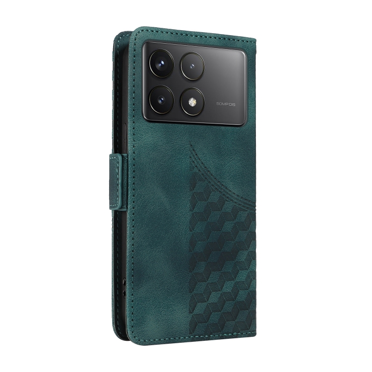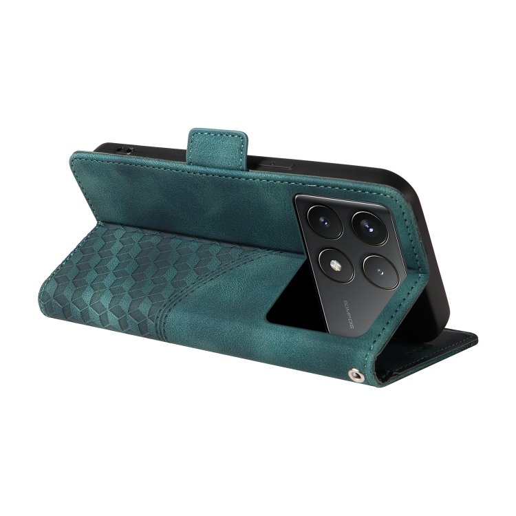 Para Xiaomi Poco F6 Pro Funda de Teléfono de Cuero Estrellado con Rombos En Relieve (Verde)