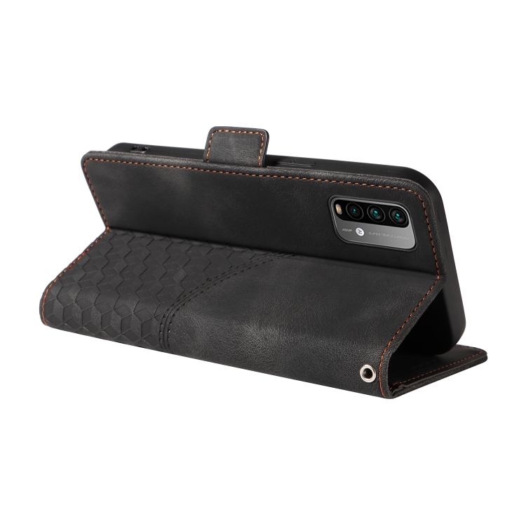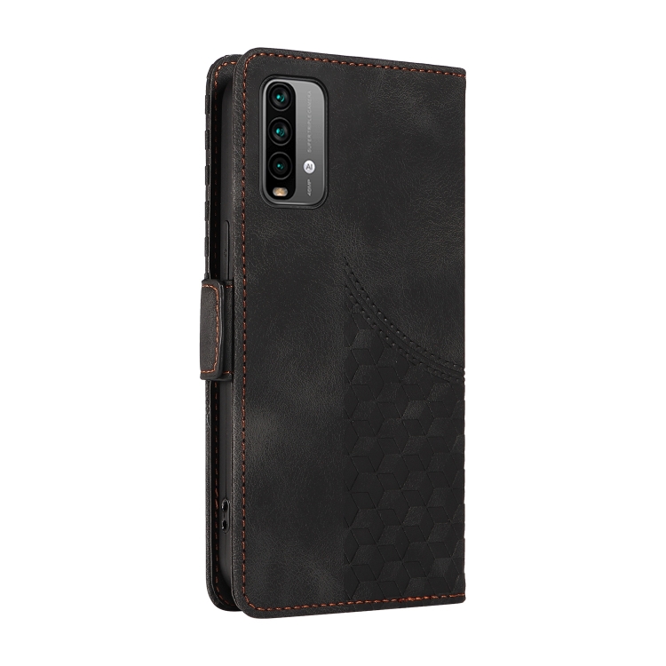 Para Xiaomi Poco M3 Funda para Teléfono de Cuero Estrellado con Rombos En Relieve (Negro)