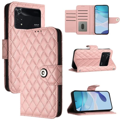 Para Xiaomi Poco M4 Pro 4G Funda para Teléfono con Tapa de Cuero con Textura Romboidal y Cordón (Rosa Coral)