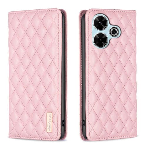 Para Xiaomi Poco M6 4G / Redmi 13 4G Funda para Teléfono con Tapa de Cuero Magnético Diamond Lattice (Rosa)