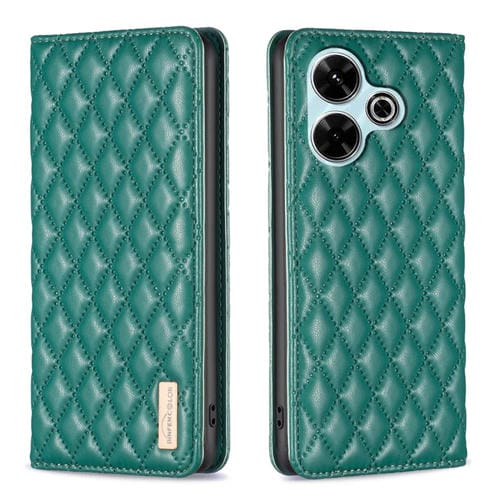 Para Xiaomi Poco M6 4G / Redmi 13 4G Funda para Teléfono con Tapa de Cuero Magnético Diamond Lattice (Verde)