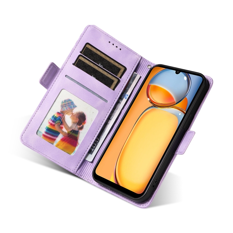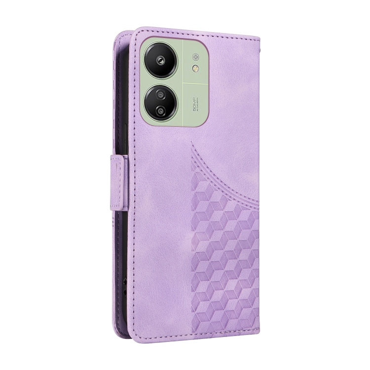 Para Xiaomi Poco M6 / C65 Funda para Teléfono de Cuero Estrellado con Rombos En Relieve (Púrpura)