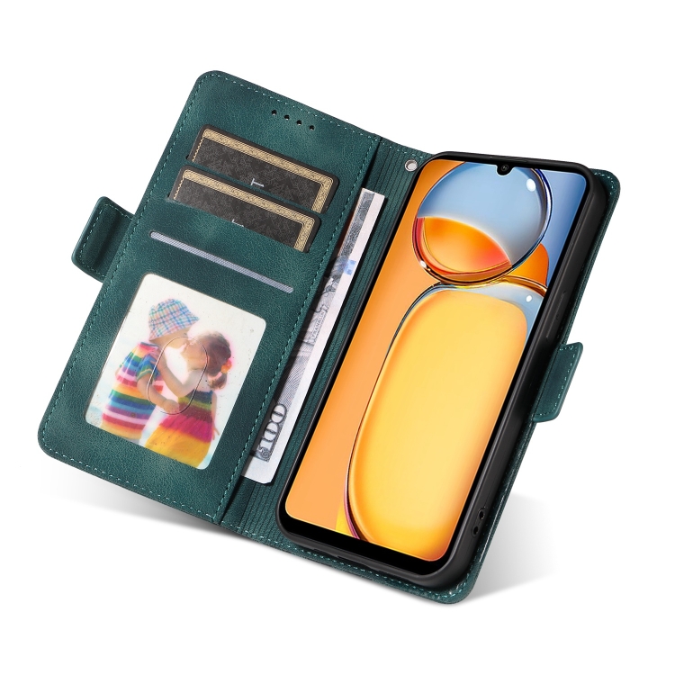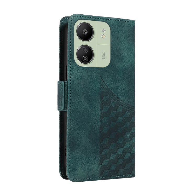 Para Xiaomi Poco M6 / C65 Funda para Teléfono de Cuero Estrellado con Rombos En Relieve (Verde)