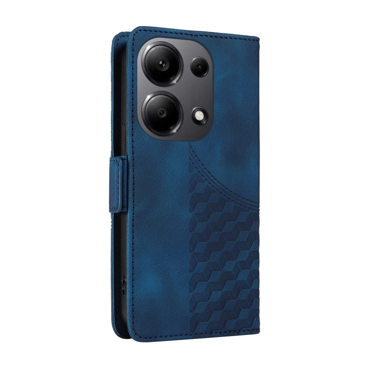 Para Xiaomi Poco M6 Pro 4G Funda para Teléfono de Cuero Estrellado con Rombos En Relieve (Azul)