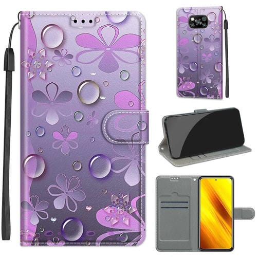 Para Xiaomi Poco X3 Nfc Tensión de Color Dibujo de Color Magnético Cierre de Cuero Horizontal Flip Pu Funda con Soporte y Ranuras para Tarjetas (Caída de Agua C16 Seis Petal Flower)