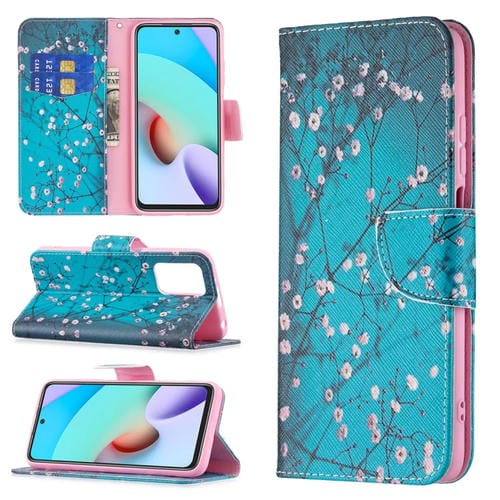 Para Xiaomi Redmi 10 Patrón de Dibujo de Color Patrón de Dibujo Horizontal Funda de Cuero con Soporte y Tragamonedas y Billetera (Flor de Ciruela)