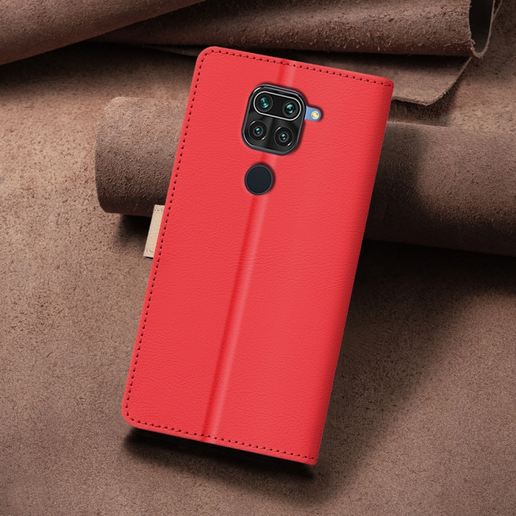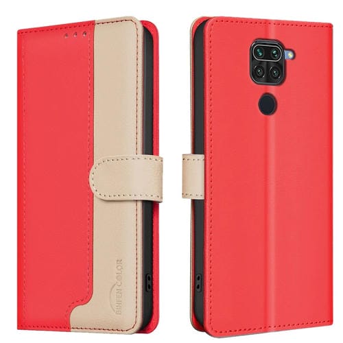 Para Xiaomi Redmi 10X 4G / Note 9 Funda de Cuero Antirrobo Rfid a Juego de Colores (Rojo)