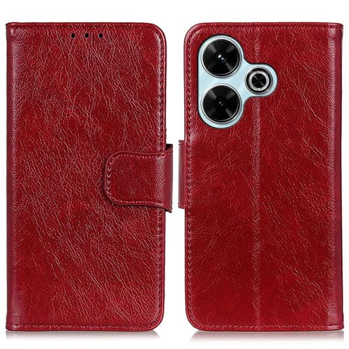 Para Xiaomi Redmi 13 4G Funda para Teléfono de Cuero con Tapa Horizontal con Textura de Napa (Rojo)