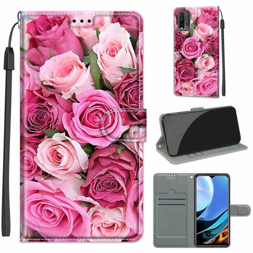Para Xiaomi Redmi 9 Power / Note 9 4G Tensión de Color Dibujo de Color Magnético Cierre de Cuero Horizontal Flip Pu Funda con Soporte y Ranuras de Tarjetas (C17 Hoja Verde Rosa Rosa)