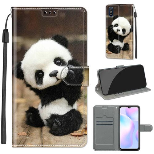 Para Xiaomi Redmi 9A Dibujo de Color de Voltaje Cierre Magnético Horizontal Flip Pu Funda de Cuero con Soporte y Ranuras de Tarjetas (C18 Placa de Madera Panda)