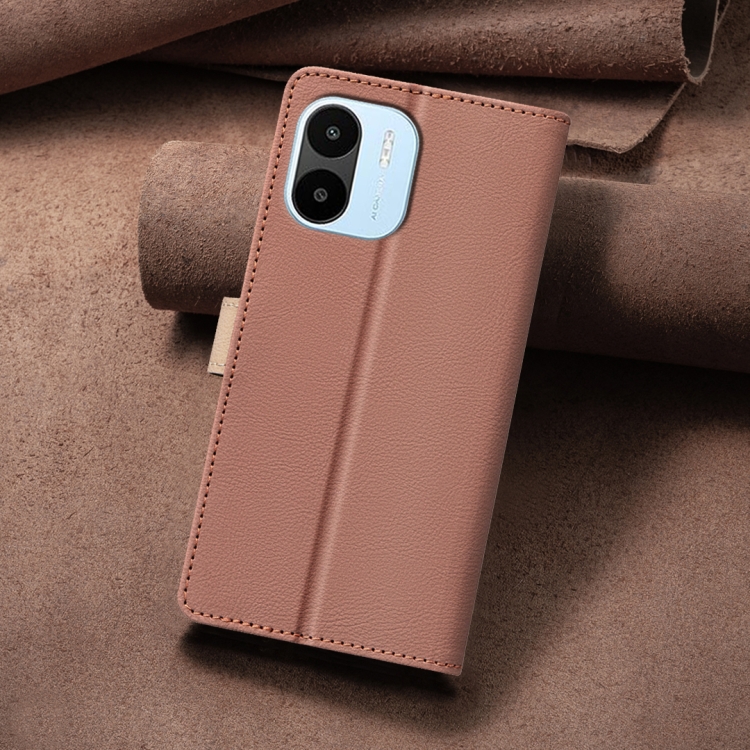 Para Xiaomi Redmi A1 / A1 + / A2 Funda de Teléfono de Cuero Antirrobo Rfid a Juego de Colores (Marrón)
