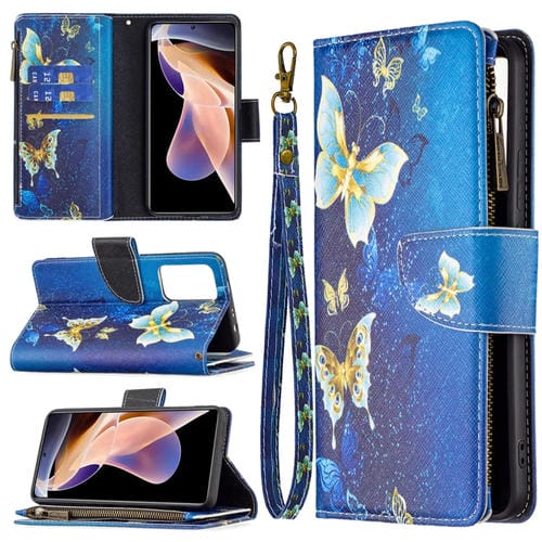 Para Xiaomi Redmi Note 11 Pro / 11 Pro + Patrón de Dibujo de Dibujo con Cremallera Caso del Teléfono de Cuero (Mariposa de Oro)