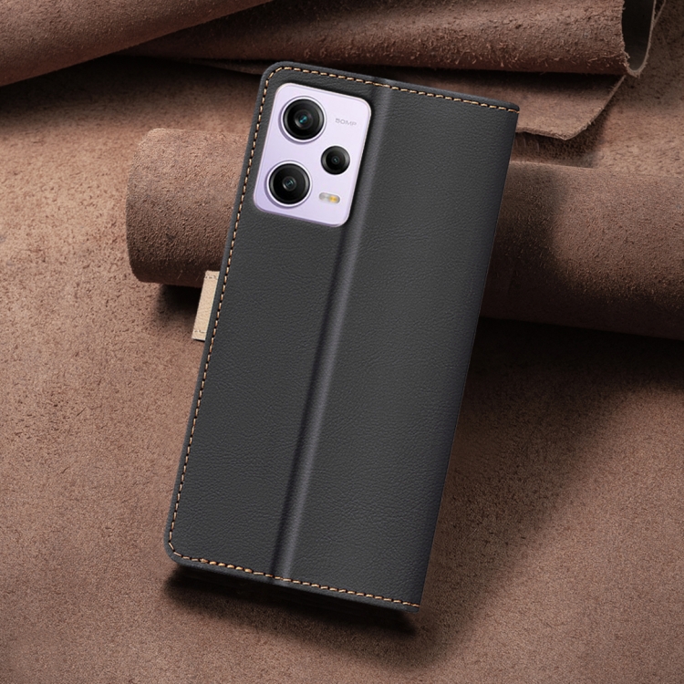 Para Xiaomi Redmi Note 12 Pro Funda de Teléfono de Cuero Antirrobo Rfid a Juego de Colores Globales (Negro)