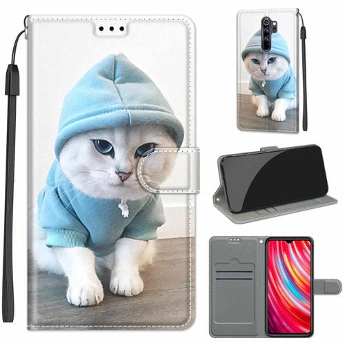 Para Xiaomi Redmi Note 8 Pro Dibujo de Color Pro Dibujo de Color Magnético Cierre de Cuero Horizontal Flip Pu Funda con Soporte y Ranuras de Tarjetas (C15 Suéter Azul Blanco Gato)