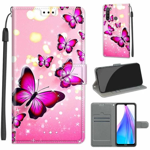 Para Xiaomi Redmi Note 8T Dibujo de Color de Voltaje Cierre Magnético Horizontal Flip Pu Funda de Cuero con Soporte y Ranuras para Tarjetas (C03 Degradado Rosa Mariposas Voladoras)