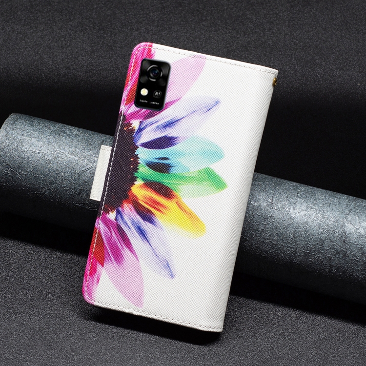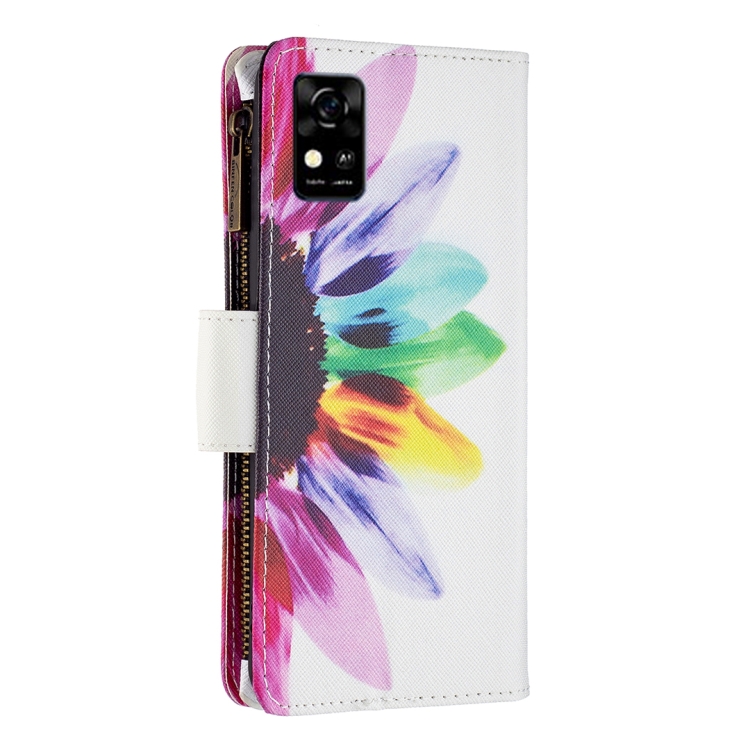 Funda de Cuero para ZTE Blade A31 con Patrón Cremallera y Flor Solar (Color)