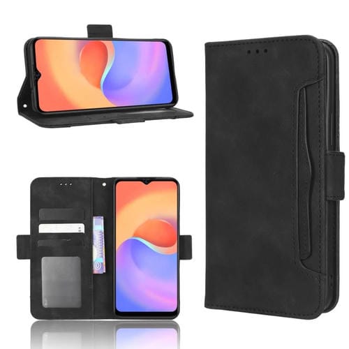 Funda de Cuero ZTE Blade A52 Lite Skin Feel con Textura Becerro y Ranuras para Tarjetas (Negro)