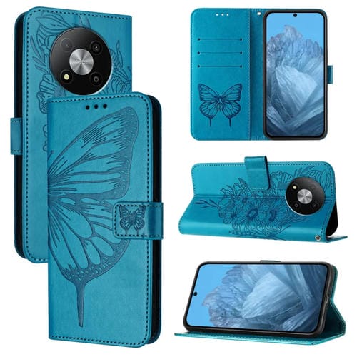 Funda de Cuero para ZTE Blade A73 5G con Mariposa en Relieve (Azul)