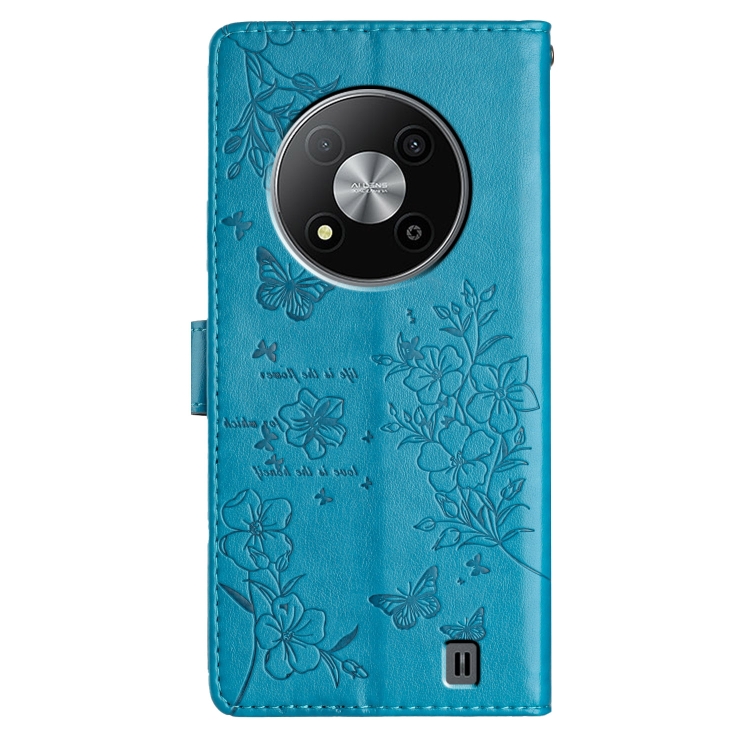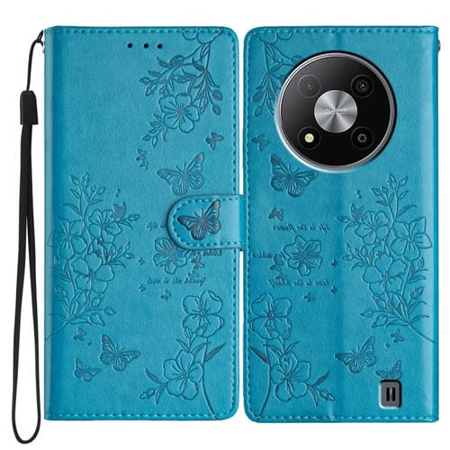 Funda para ZTE Blade A73 5G de Cuero con Relieve Flor de Amor y Mariposa (Azul)