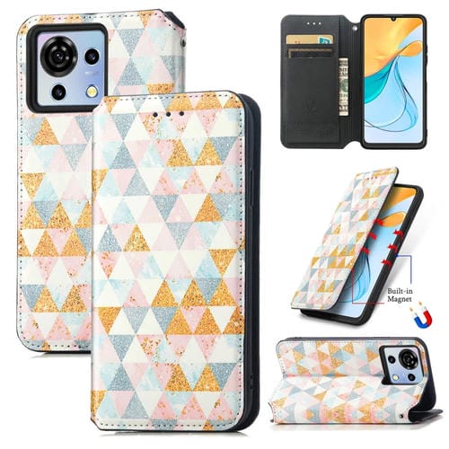 Funda de Cuero Magnética para ZTE Blade V50 Vita Caseneo Colorida (Rombo)