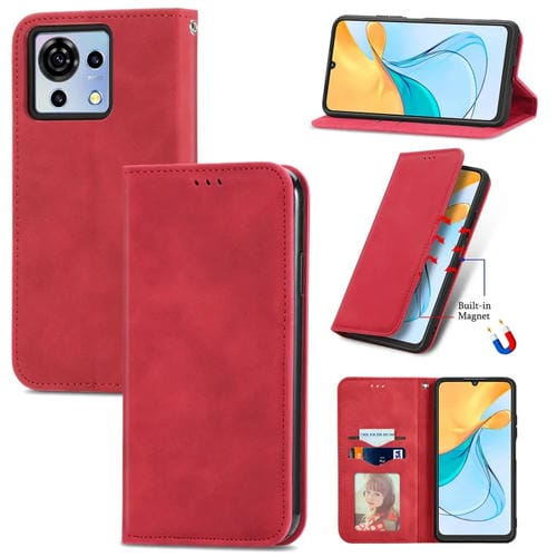 Funda de Cuero Magnética para ZTE Blade V50 Vita Retro Skin Feel (Rojo)