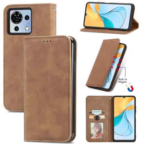 Funda de Teléfono ZTE Blade V50 Vita Cuero Magnético Retro Skin Feel (Marrón)