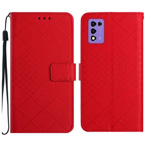 Funda de Cuero para ZTE Libero 5G Iii con Textura de Rejilla Rómbica (Rojo)