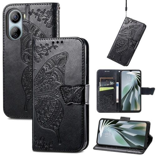 Funda para ZTE Libero 5G Iv de Cuero con Relieve Flor de Amor y Mariposa (Negro)
