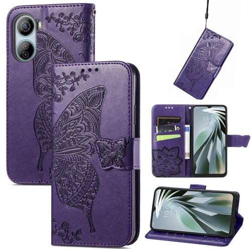 Funda para ZTE Libero 5G Iv de Cuero con Relieve Flor de Amor y Mariposa (Púrpura Oscuro)