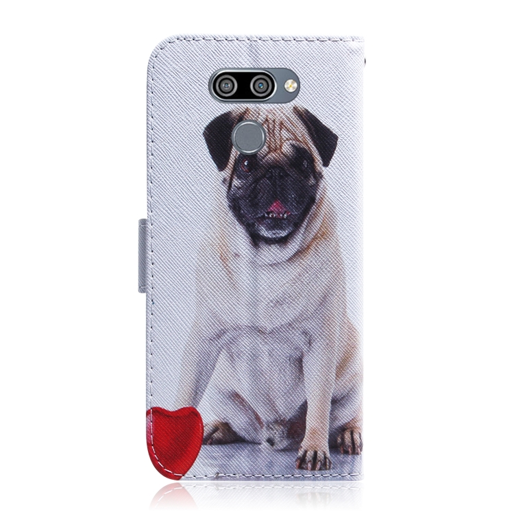 Funda de Cuero con Tapa Horizontal y Soporte para LG K50 (Pug) con Ranuras para Tarjetas y Billetera