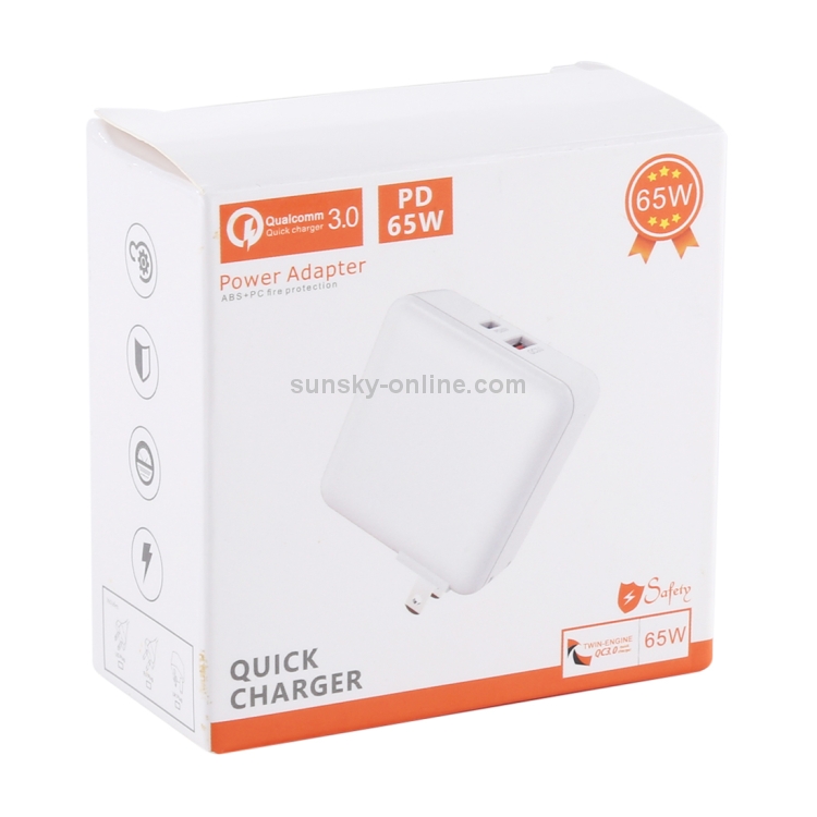 Cargador Rápido Usb Pd65W-A6 65W 90 Grados Multifunción Portátil Clavija Plegable (Blanco)