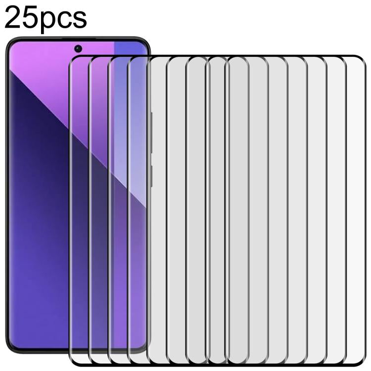 Película de vidrio templado con borde curvo 3D 9H HD, 25 unidades, para Xiaomi Redmi Note 13 Pro+ (negro)
