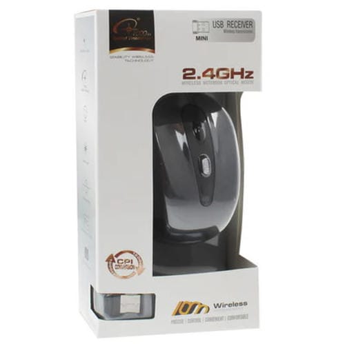 • 1x Ratón Óptico Inalámbrico 2,4 GHz con Receptor USB Plug and Play (Gris)