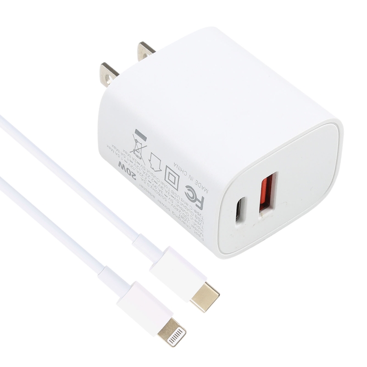 Cargador USB-C U087 20W + Cable Tipo-C a 8 Pin 100W Carga Rápida 1M (Blanco)