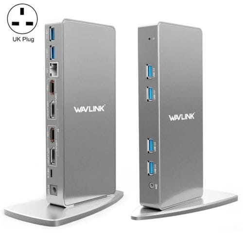 - 1x Adaptador Hub Wavlink WL-UG69DK7 de Aleación de Aluminio para Estación de Acoplamiento Universal Tipo C para Portátiles (Enchufe Reino Unido)