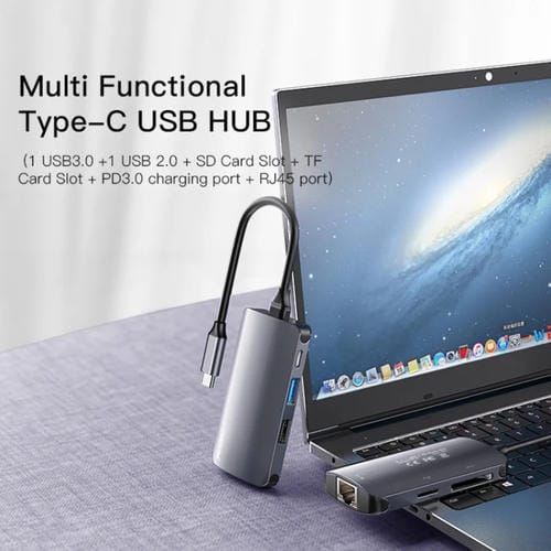 La estación de acoplamiento Yesido HB15 es un adaptador multifuncional con 6 Puertos USB-C / Type-C diseñado para ampliar la conectividad de dispositivos compatibles como Laptops, Tablets y Smartphones. Fabricada con aleación de aluminio y PVC, ofrece durabilidad y una rápida disipación de calor. Su función Principal es proporcionar múltiples interfaces de entrada y salida, incluyendo Puertos para Tarjetas TF y SD, red RJ45, USB 3.0 y USB 2.0, además de Soporte para Carga rápida PD de hasta 80W. Este hub permite transferencias de datos a alta velocidad y Conexión eficiente de periféricos, optimizando el rendimiento en entornos de oficina y entretenimiento.